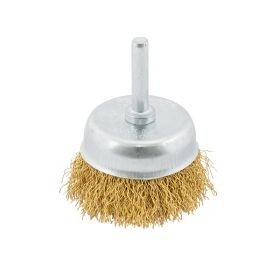 Щетка торцевая из латунированной рифленой проволоки Ø 65 мм со стержнем ¼" MASTERTOOL 19-7406
