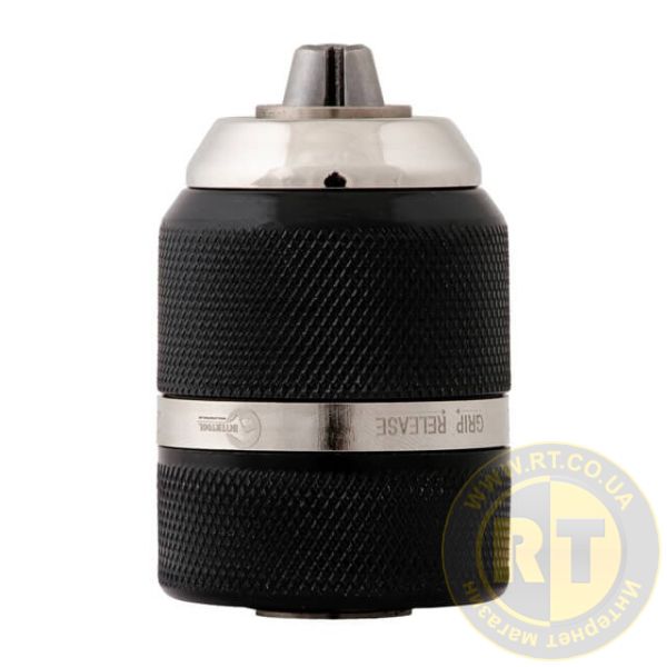 Быстрозажимной патрон значительно экономит время при частой замене сверла. Он надежно фиксирует хвостовики диаметром от 2-13 мм и не даёт им проворачиваться. Для замены оснастки не требуется дополнительный инструмент. Стрелки на патроне указывают, в какую сторону затянуть (GRIP), а в какую ослабить хват патрона (RELEASE). Autolock срабатывает после характерного щелчка при затягивании.