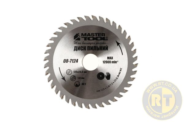 Диск пильный для дерева с твердосплавными напайками 125×22.2×40T MASTERTOOL 08-7124
