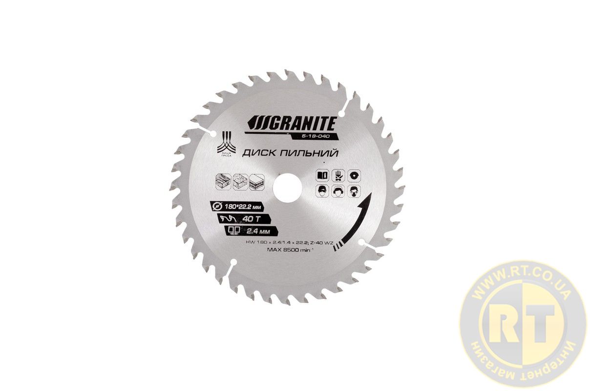 Пильный диск для дерева с твердосплавными напайками 180×22.2×40Т адаптер 22.2–20 мм 8400 об/мин — высококачественный инструмент для чистой и точной резки древесины любой твердости.
