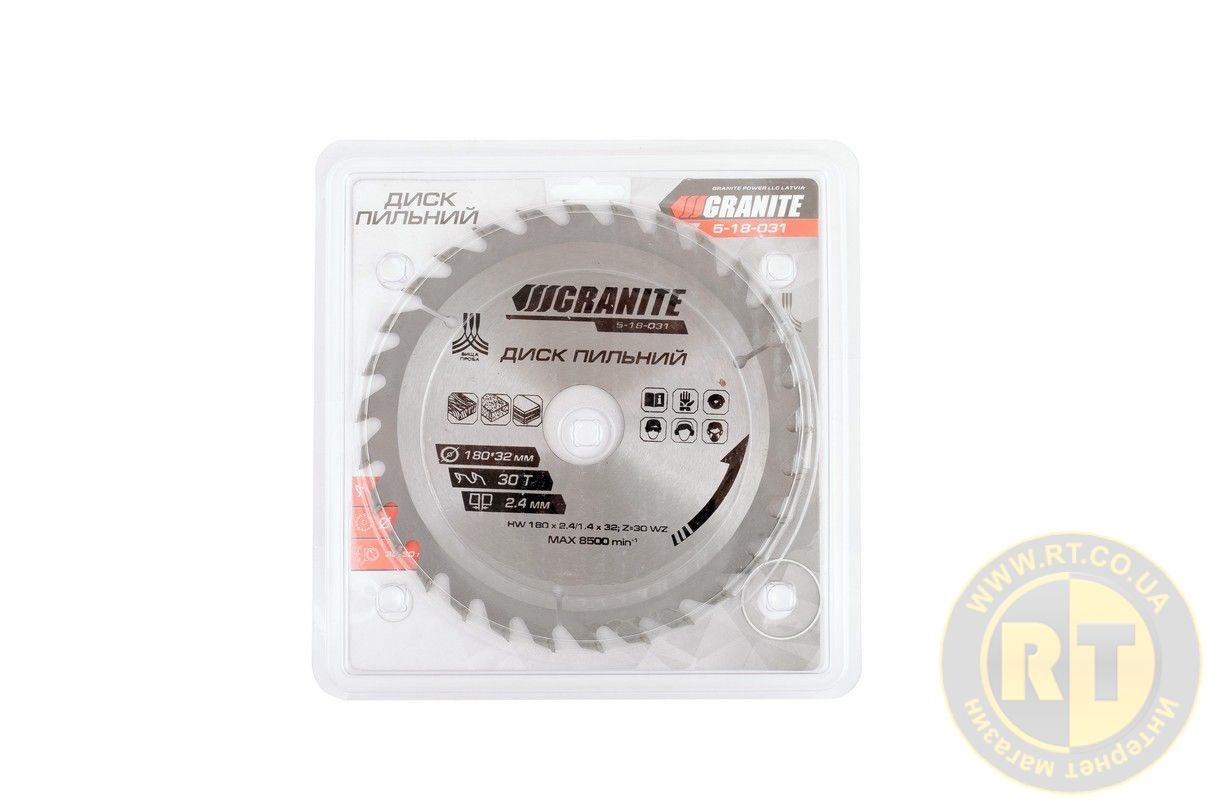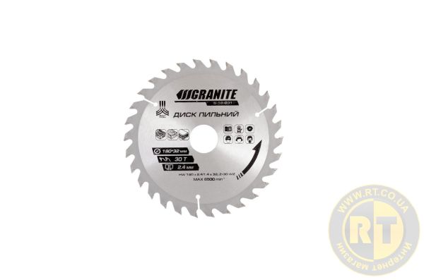 Пильный диск для дерева с твердосплавными напайками 180×32×30Т адаптер 32–30 мм 8400 об/мин — высококачественный инструмент для чистой и точной резки древесины различных пород.