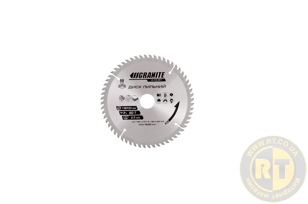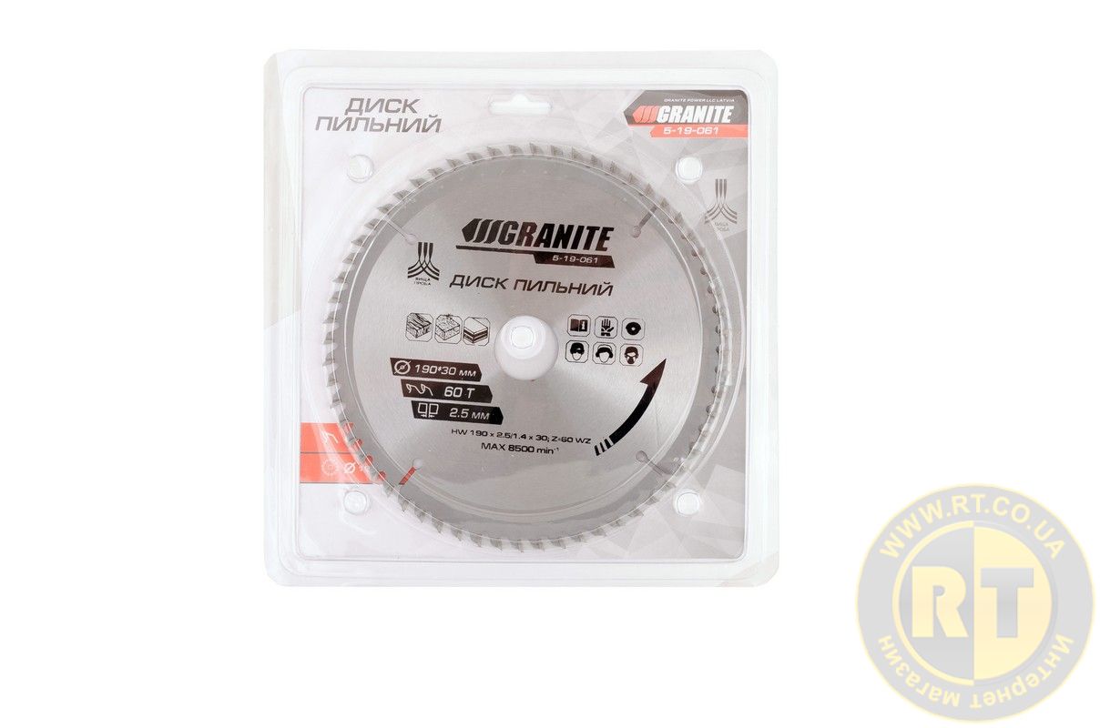 Диск пильный для дерева с твердосплавными напайками 190×30×60Т 8000 об/мин MASTERTOOL 5-19-061