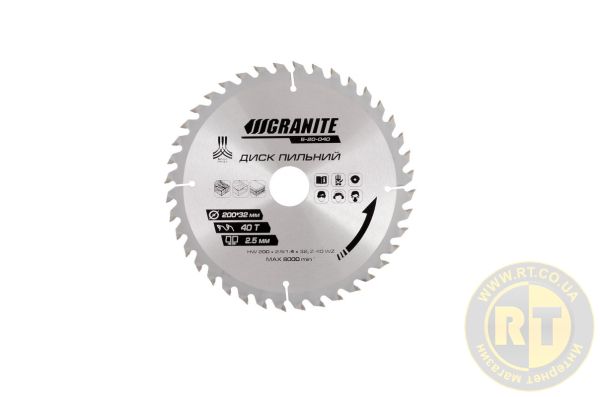 Диск пильный для дерева с твердосплавными напайками 200×32×40Т адапт 32-30/32-25.4 7600 об/мин MASTERTOOL 5-20-040