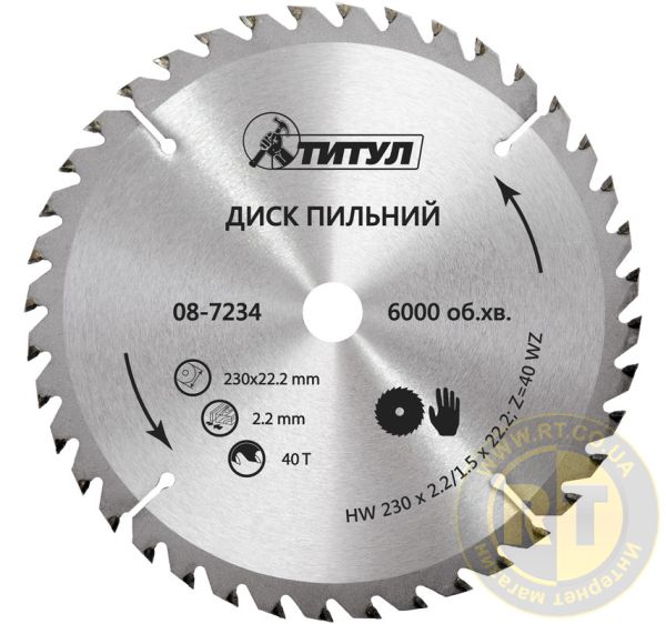 Диск пильный для дерева с твердосплавными напайками 230×22.2×40T MASTERTOOL 08-7234
