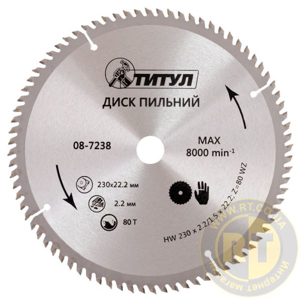 Диск пильный для дерева с твердосплавными напайками 230×22.2×80T MASTERTOOL 08-7238