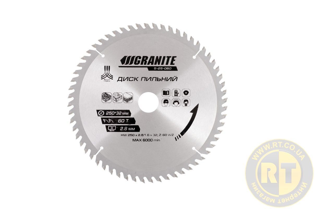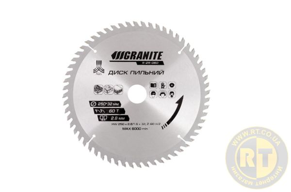 Диск пильный для дерева с твердосплавными напайками 250×32×60Т адапт 32-30/32-25.4 6100 об/мин MASTERTOOL 5-25-060