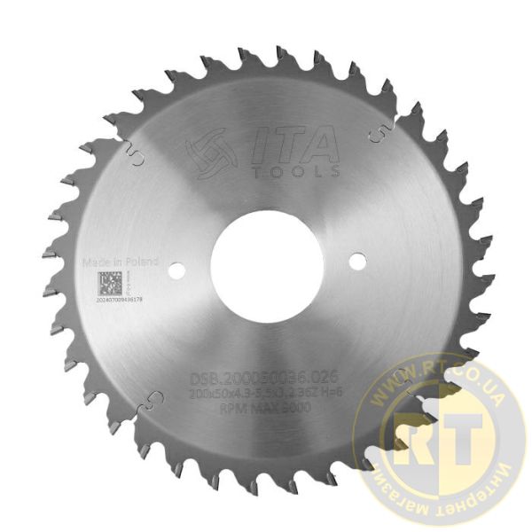 DSB.Підрізна пила D=200 F= 50 Z= 36 K=4,4/5,5 P=3,2 H=6 T PH: 2/7/80 ITA TOOLS DSB.200050036.026
