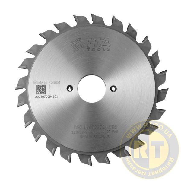 DSC.Підрізна пила D=120 F= 22 Z= 12+12 K=2,8-3,6 P=2,2 H=6 ITA TOOLS DSC.120022024.006