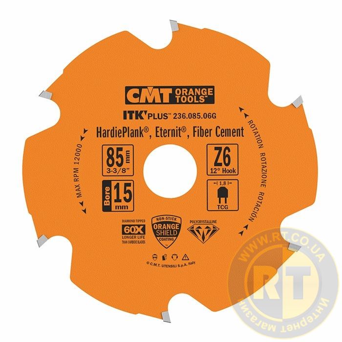 Пили компанії CMT серії 236 з ріжучими зубами з полікристалічного алмазу PCD. Розроблені для ефективного розпилу таких твердих абразивних матеріалів, як Hardieplank ® and Hardiepanel ®, пластики, різні плитні ламіновані матеріали і тверді породи деревини, фіброцемент, гіпсокартон.
