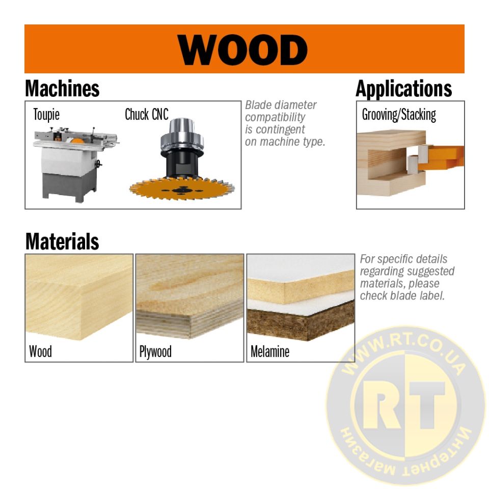 Спеціальний пильний диск з посиленим полотном пили, для вирізання пазів і канавок в м\'якій і твердій деревині, МДФ, OSB і ДСП.