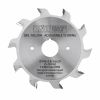 Регульовані підрізні пили CMT дозволяють змінювати ширину паза за допомогою установки проставочних кілець між дисками пилки. Ми рекомендуємо використовувати регульовані підрізні пили для панелей з перепадами по товщині, гнутих панелей. Виступ підрізної пилки над полотном стола повинен бути не більше 3 мм. При роботі з більшою глибиною (пропилу) ресурс підрізної пилки значно зменшується. Працюють в парі з основним пильним диском і призначені для вибірки невеликого паза зі зворотного боку ламінованої панелі для запобігання сколів. Підрізна пила повинна вибирати паз на 0,1-0,2 мм ширше, ніж пропил основної пилки.