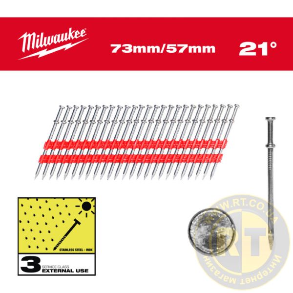 Гвозди для опалубки с двойной круглой головкой MILWAUKEE, 3,3/21°/73мм (2000шт)