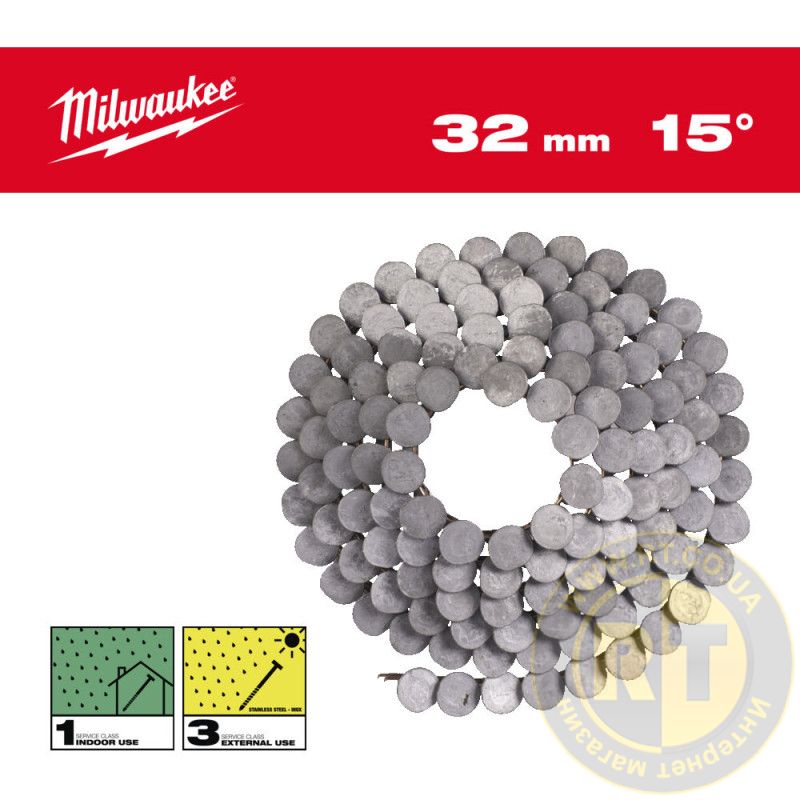 Гвозди горячеоцинкованные с круглой головкой в катушке MILWAUKEE, 3.05х10,5мм/15°/32мм, (2160шт)