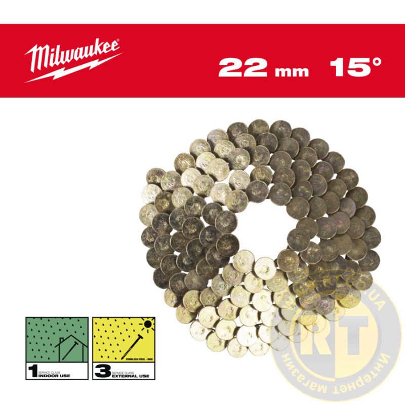 Гвозди из нержавейки с круглой головкой в катушке MILWAUKEE, 3,05х10,5мм/15°/22мм, (2880шт)