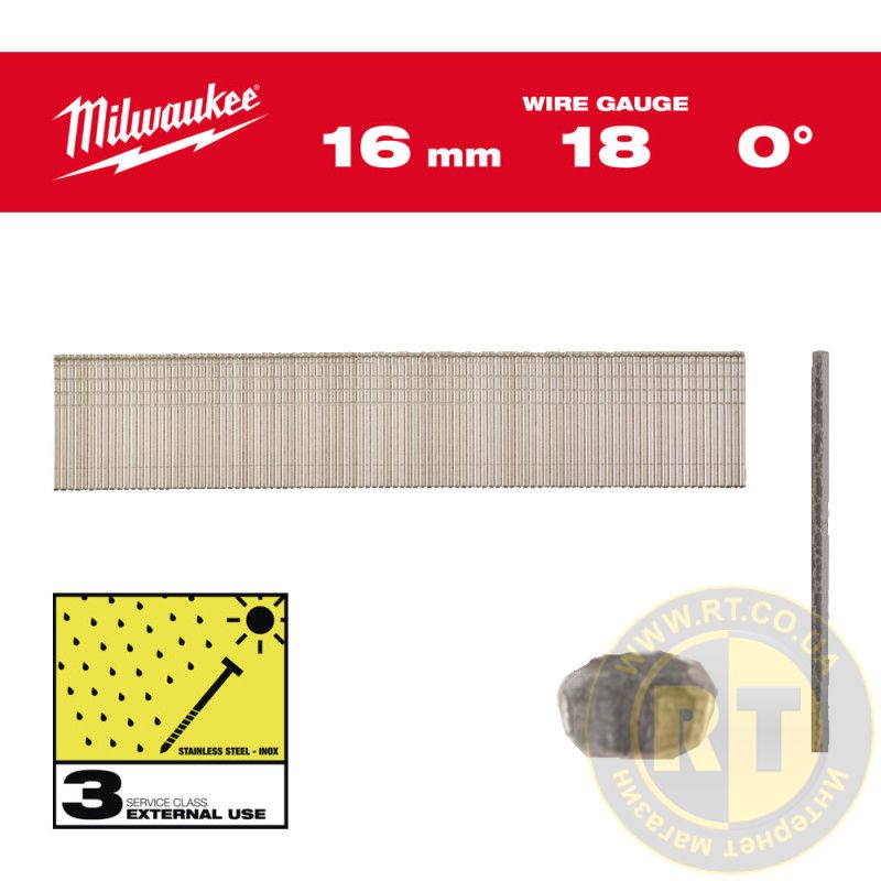 Гвозди из нержавейки с Т-образной головкой MILWAUKEE, 18G/0°/16мм, (10000шт)
