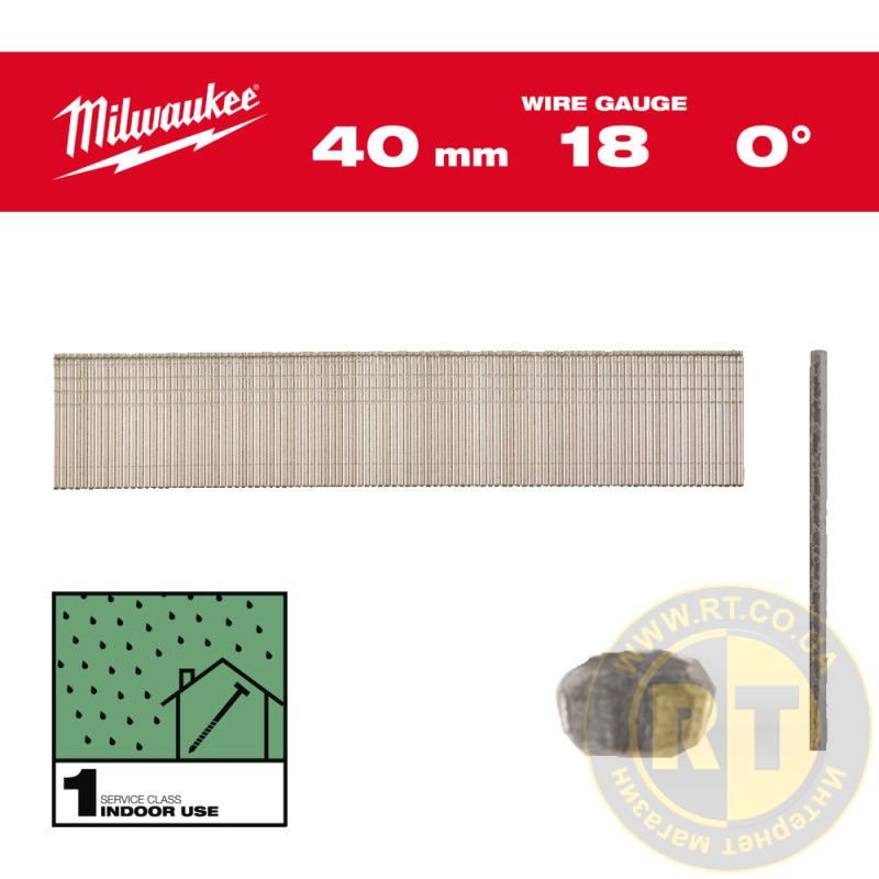 Гвозди оцинкованные покрытые смолой с Т-образной головкой MILWAUKEE, 18G/0°/40мм, (5000шт)