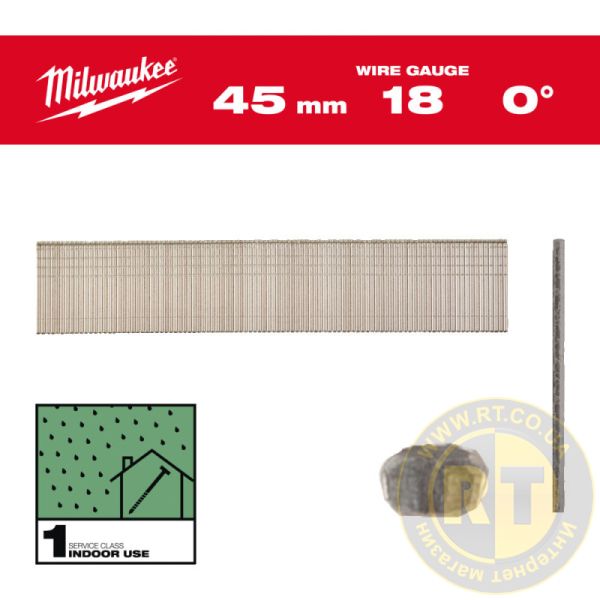 Гвозди оцинкованные покрытые смолой с Т-образной головкой MILWAUKEE, 18G/0°/45мм, (5000шт)