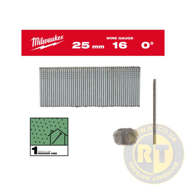 Гвозди оцинкованные с Т-образной головкой MILWAUKEE, 16G/0°/25мм, (5000шт)