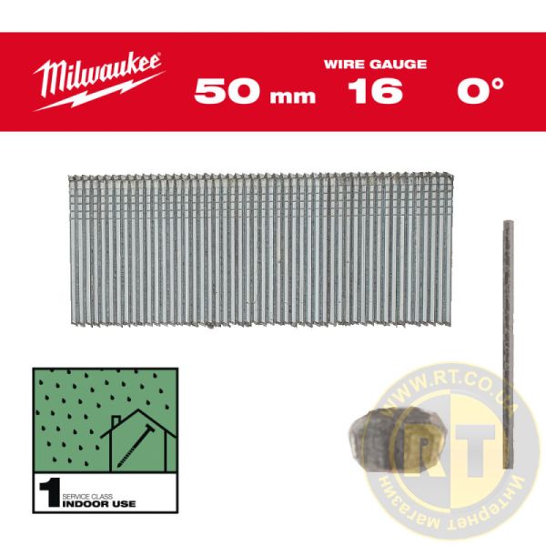 Гвозди оцинкованные с Т-образной головкой MILWAUKEE, 16G/0°/50мм, (2500шт)