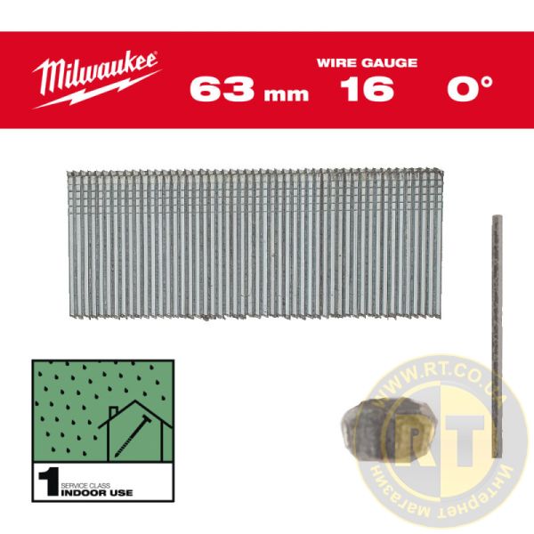 Гвозди оцинкованные с Т-образной головкой MILWAUKEE, 16G/0°/63мм, (2500шт)