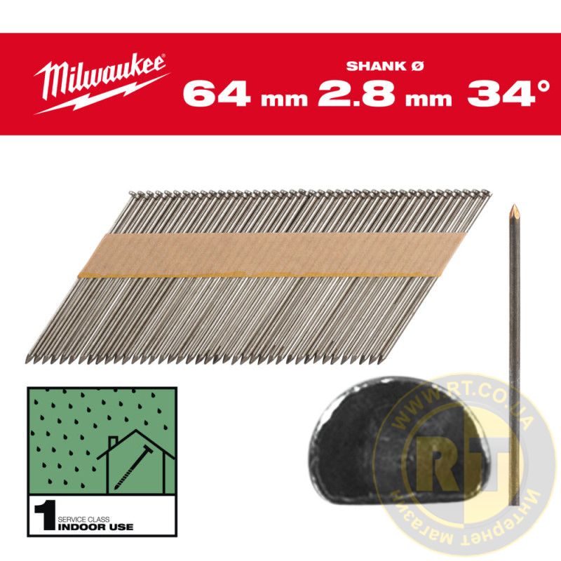 Гвозди с D-образной головкой MILWAUKEE, 2,8/34°/63мм (2200шт)