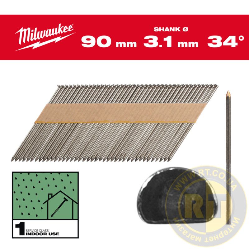 Гвозди с D-образной головкой MILWAUKEE, 3,1/34°/90мм (2200шт)