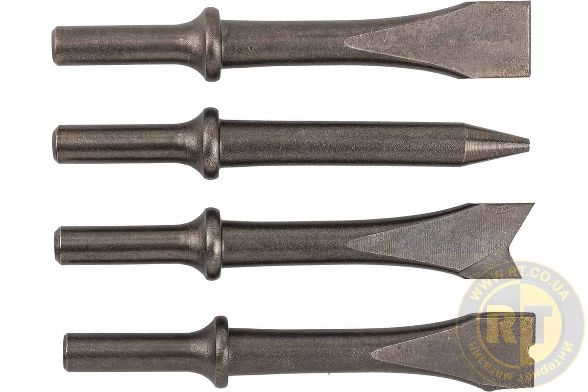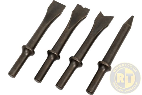 Набор из четырех самых популярных зубил для пневматического молота, которые можно использовать с любым молотом, имеющим быстросменный патрон.