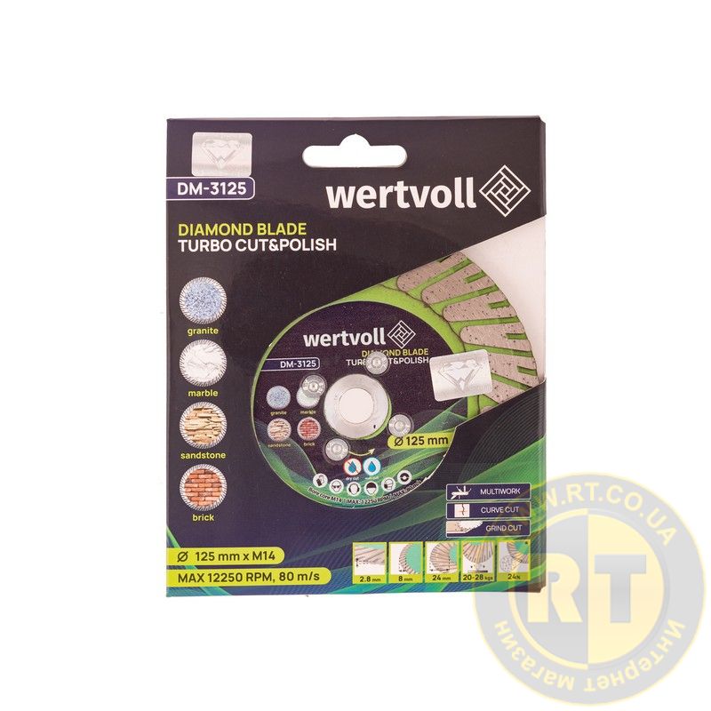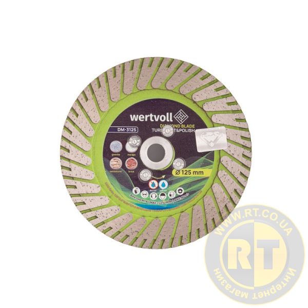 Алмазный диск TURBO CUT&POLISH 125×2,8 мм, h=24/8 мм, >24%, Ø22,2 / М14, 12 250 об/мин WERTVOLL (DM-3125)