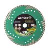 Алмазный диск WERTVOLL TURBO GRANITE 230×3 мм предназначен для интенсивного реза гранита, мрамора, песчаника, тротуарной плитки и других твёрдых каменных материалов. Диаметр 230 мм обеспечивает большую глубину реза, что удобно при раскрое толстых плит, бордюров и блоков. Турбо-сегментированный обод обеспечивает высокую скорость работы и эффективный отвод шлама.