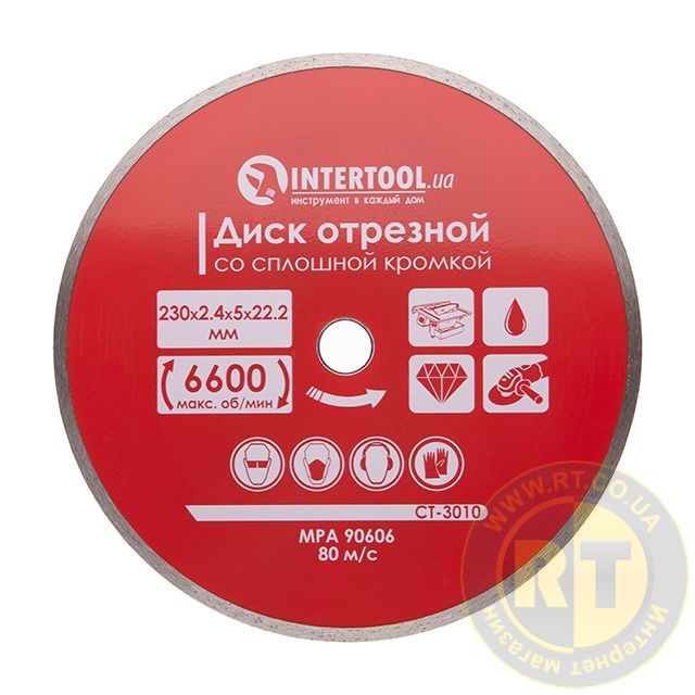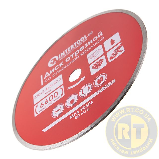 Диск отрезной алмазный, со сплошной кромкой, 230 мм, 22-24%, 6600 об/мин INTERTOOL CT-3010