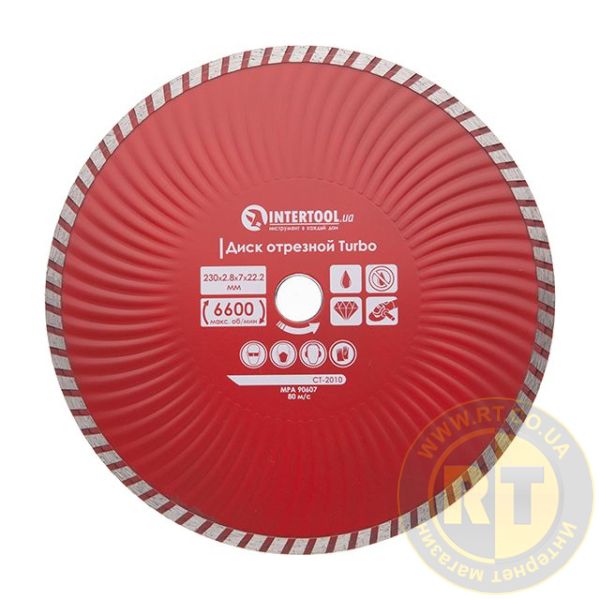 Диск отрезной алмазный Turbo, 230 мм, 22-24%, 6600 об/мин INTERTOOL CT-2010