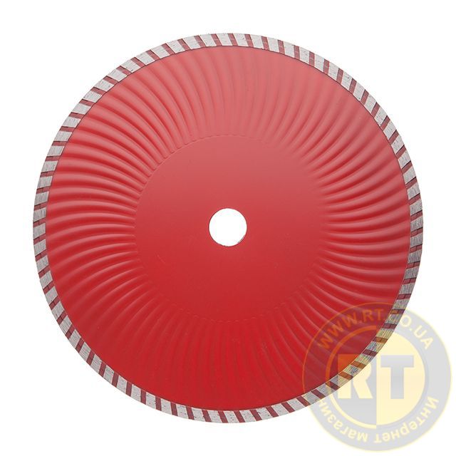Состав металла самого диска, а также непрерывный алмазоносный слой отрезного круга гофрирован, что позволяет выдерживать серьезную силовую и тепловую нагрузку, и дает возможность осуществлять работы по резке бетона и кирпича сухим способом, не охлаждая алмазный турбо-диск. Также их можно использовать и для мокрого типа резки. Повышенная насыщенность алмазной крошкой до 24% обеспечивает высокий ресурс работы.