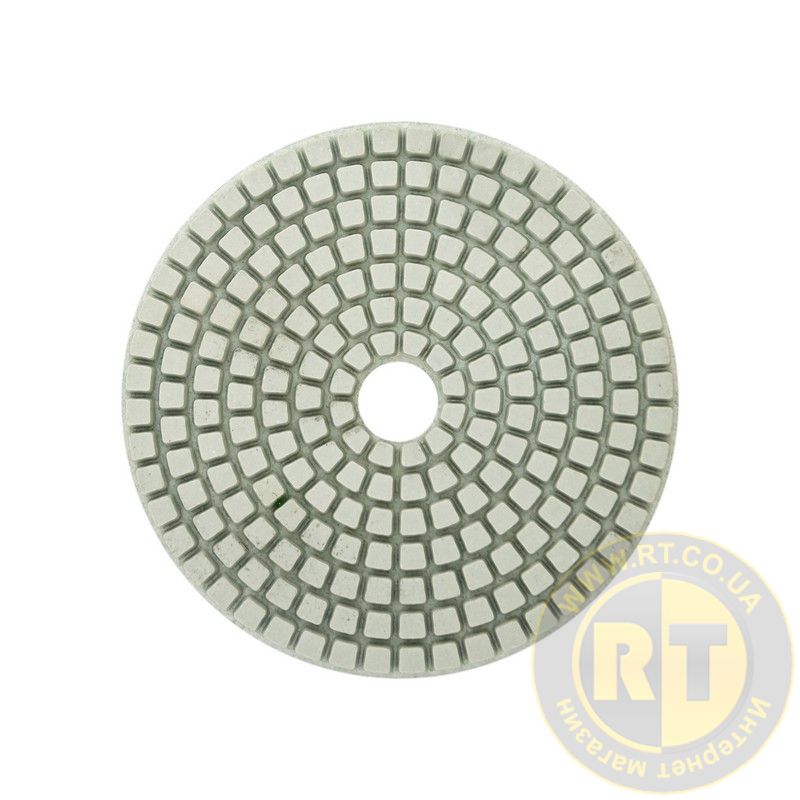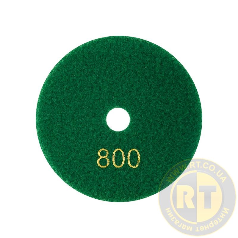 Диск шлифовальный алмазный гибкий Ø100 мм P800 на липучке 2800 об/мин — инструмент для деликатной финишной шлифовки и полировки твердых поверхностей: мрамора, гранита, керамики, бетона и искусственного камня. Обеспечивает гладкую, ровную структуру без царапин и подготавливает материал к окончательной полировке.