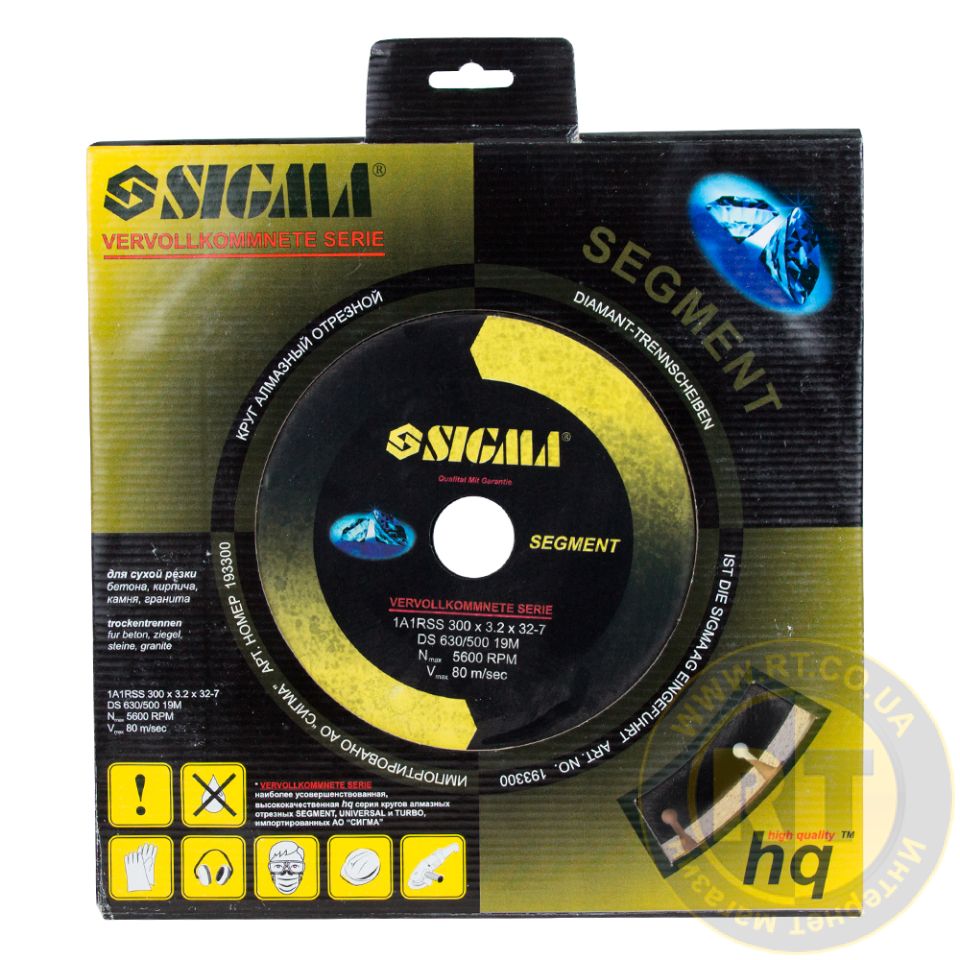 Круг алмазный HQ сегментный Ø300×32мм, 5600об/мин SIGMA (193300z) предназначен для резки бетона, кирпича, бордюрного камня, тротуарной плитки, гранита, черепицы, шифера и других строительных материалов без принудительного охлаждения.