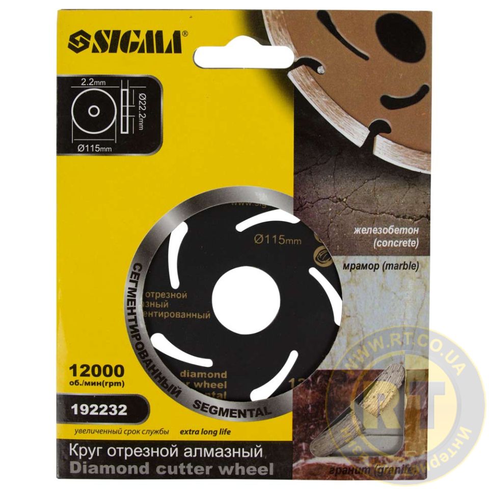 Круг алмазный сегментированный Ø115×22.2мм, 12000об/мин SIGMA (1922321) - предназначен для сухого реза кирпича, черепицы, шифера и других строительных материалов при использовании УШМ (углошлифовальная машина) и другого камнерезного оборудования.
