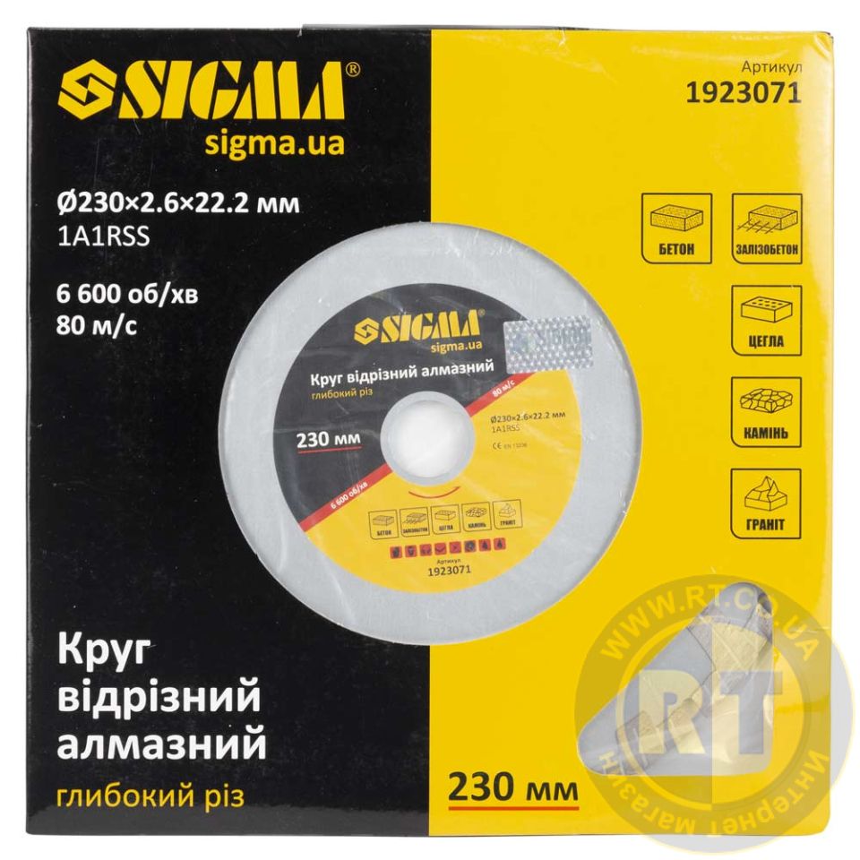 Круг отрезной алмазный Глубокий рез Ø230×22.2мм SIGMA 1923071