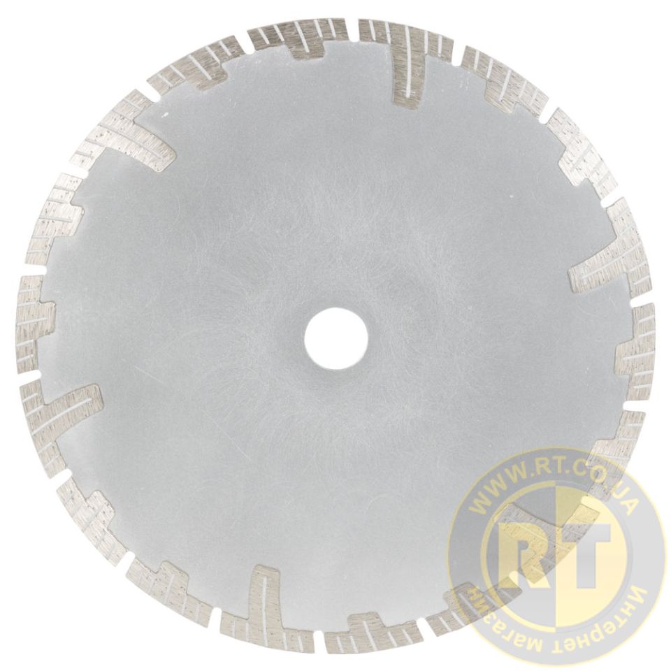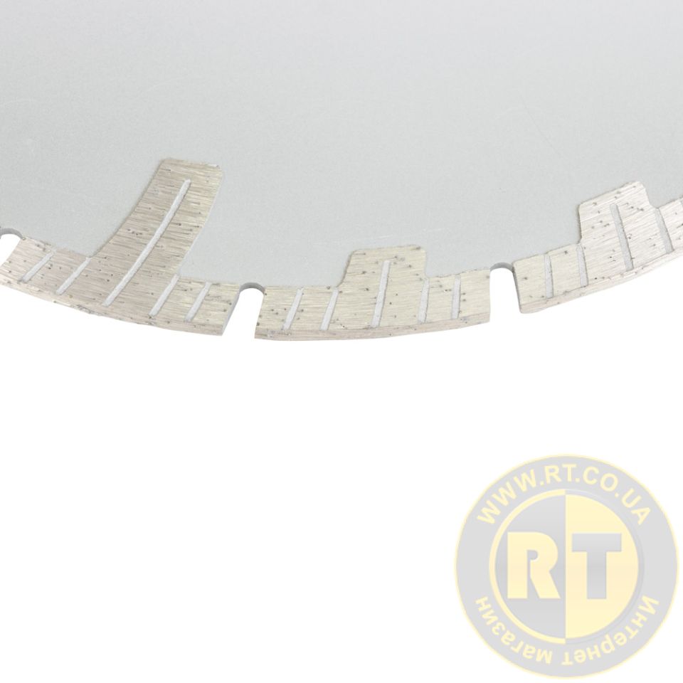 Благодаря оригинальной турбо-сегментной форме режущей кромки, круг активно охлаждается в процессе работы и не требует обязательной подачи воды. Обеспечивает более глубокий и плавный рез по сравнению со стандартными сегментированными кругами. Т-зуб служит для возможного подшлифовки бетонных наплывов, обеспечивает защиту режущего слоя от бокового износа.