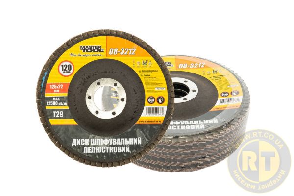 Диск шлифовальный лепестковый конусный Т29 зерно 120 125×22 мм 5 шт MASTERTOOL 08-3212PC