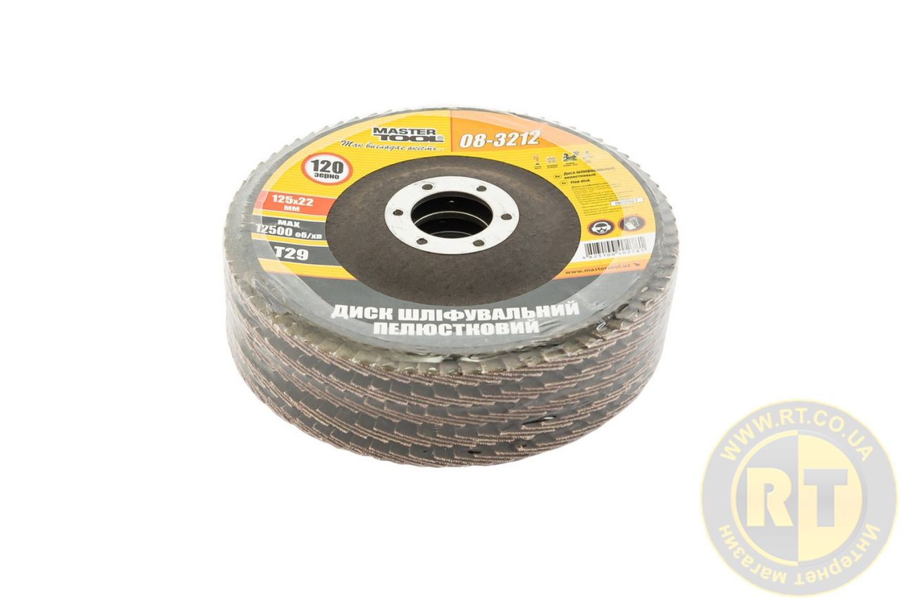 Диск шлифовальный лепестковый конусный Т29 зерно 120 125×22 мм 5 шт MASTERTOOL 08-3212PC