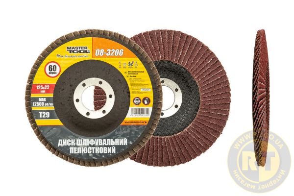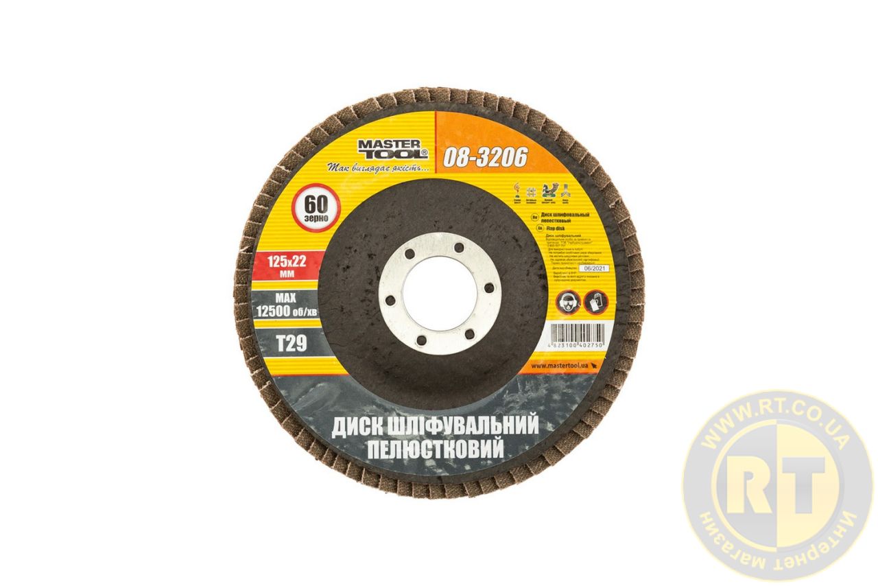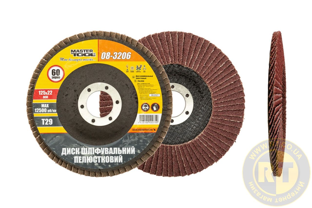 Диск шлифовальный лепестковый конусный Т29 зерно 60 125×22 мм MASTERTOOL 08-3206