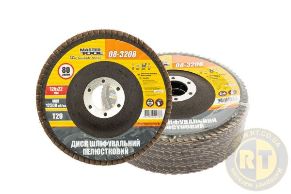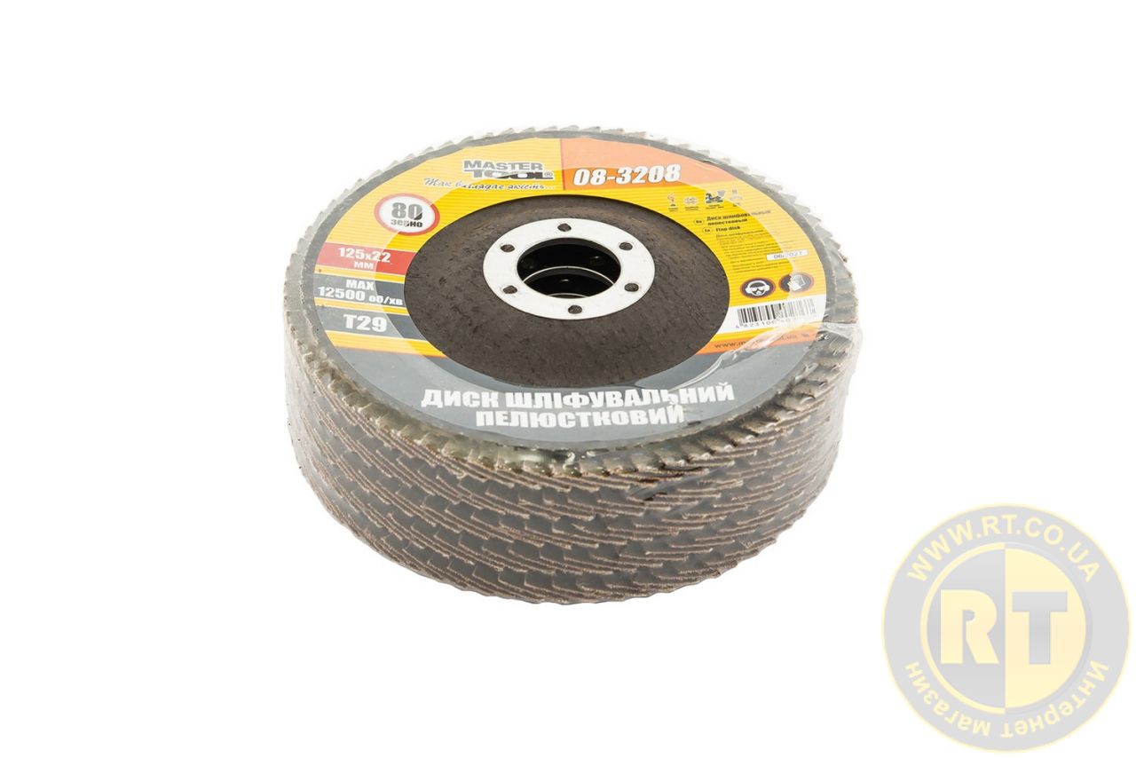 Диск шлифовальный лепестковый конусный Т29 зерно 80 125×22 мм 5 шт MASTERTOOL 08-3208PC