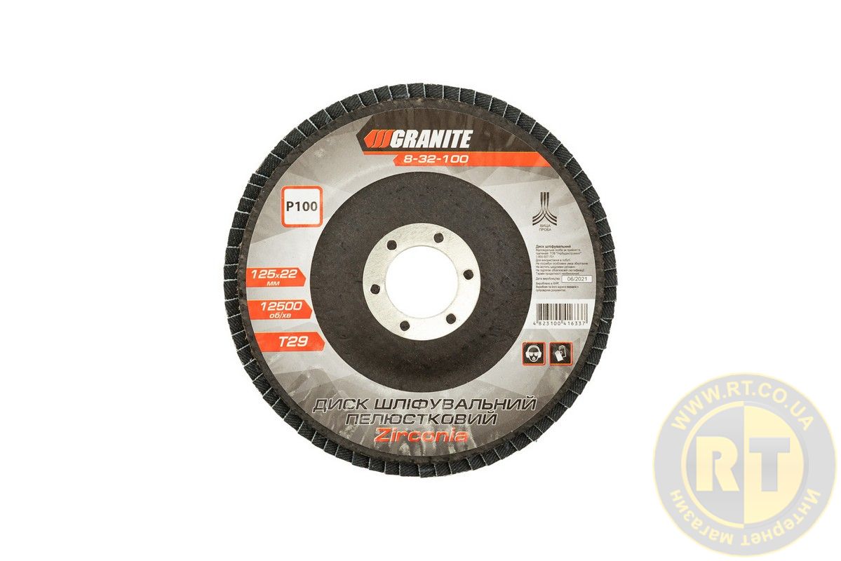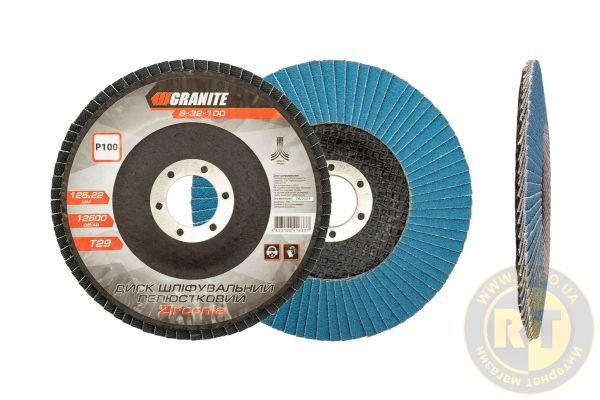 Диск шлифовальный лепестковый конусный ZIRCONIA Т29 зерно 100 125×22 мм MASTERTOOL 8-32-100