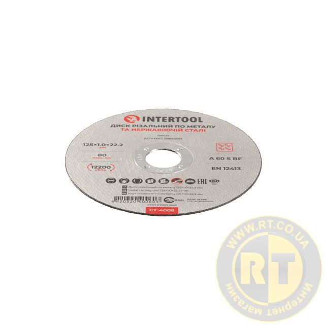 Круг отрезной по металлу, 125×1,0×22,2 мм, 12200 об/мин INTERTOOL CT-4006