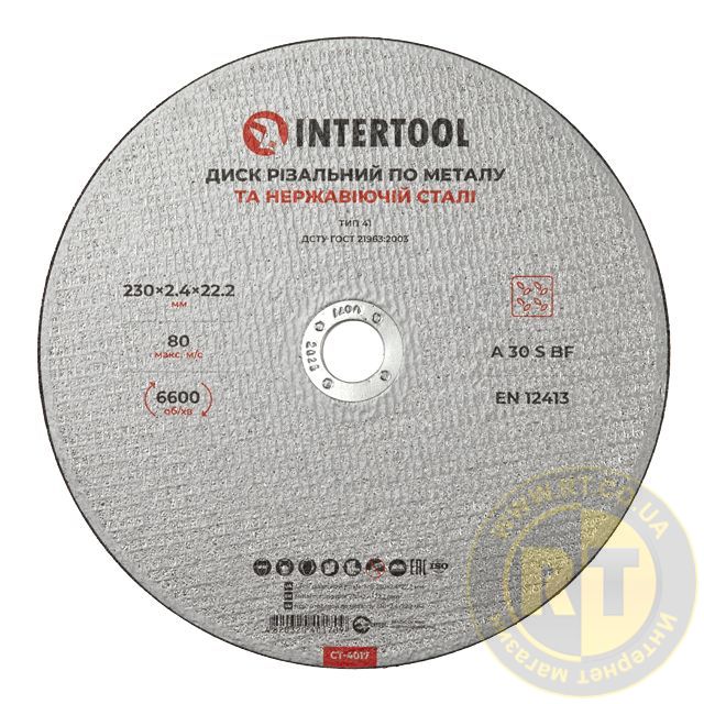 Круг отрезной по металлу, 230×2,4×22,2 мм, 6600 об/мин INTERTOOL CT-4017