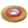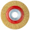 Щетка проволочная дискообразная Ø150мм Ø32мм (латунированная) SIGMA (9012341) применяется для механической очистки поверхности изделий от естественных или искусственных наслоений - застарелых лакокрасочных покрытий, грязи, ржавчины, окалины, шлака и брызг.