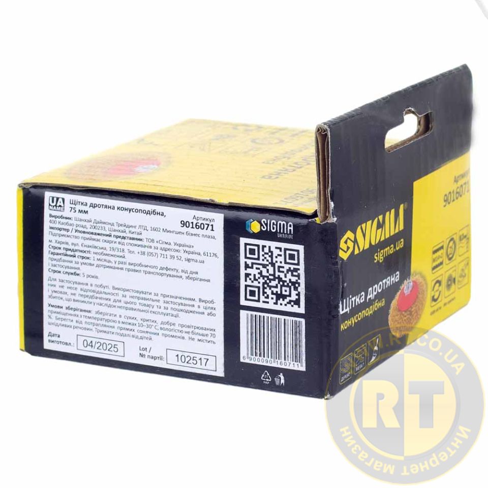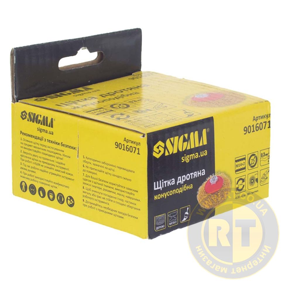 ![]() | Щетка проволочная конусообразная Ø100мм М14×2мм (латунированная) SIGMA 9016101. Подробнее... | 100 мм | 13 мм | 86грн | |