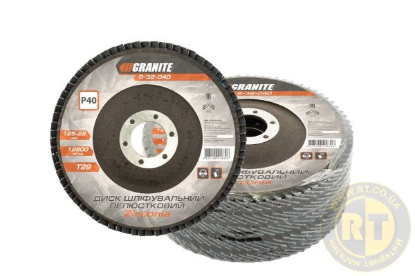 • Набор из 5 дисков шлифовальных лепестковых ZIRCONIA T29 зернистостью 40.