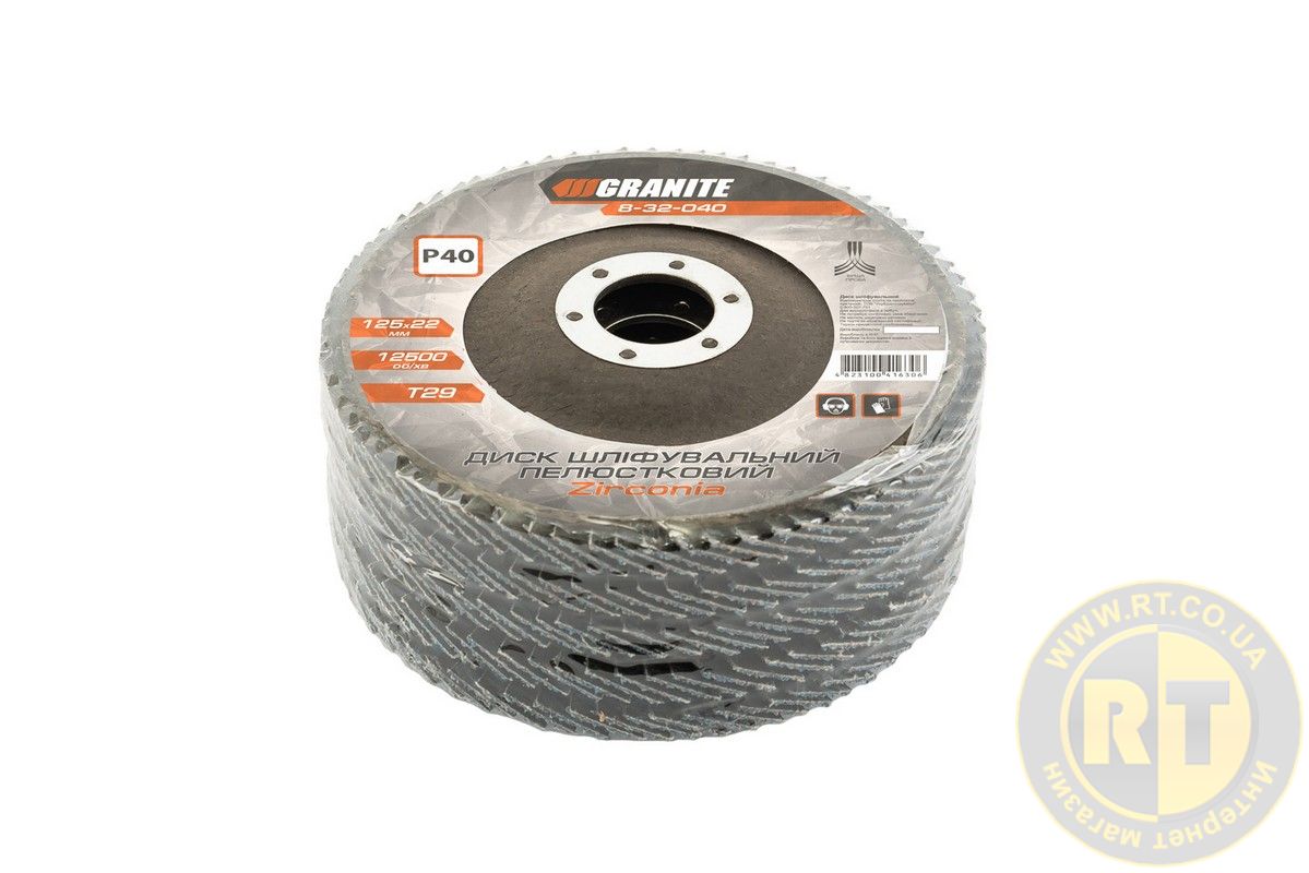 Диск шлифовальный лепестковый конусный ZIRCONIA Т29 зерно 40 125×22 мм 5 шт MASTERTOOL 8-32-040PC