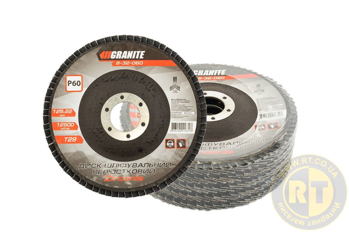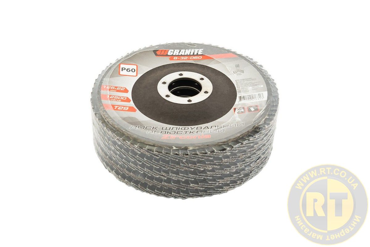 Диск шлифовальный лепестковый конусный ZIRCONIA Т29 зерно 60 125×22 мм 5 шт MASTERTOOL 8-32-060PC