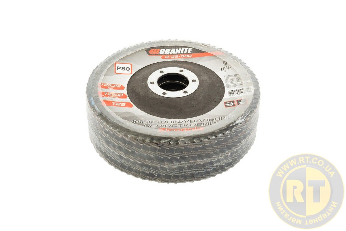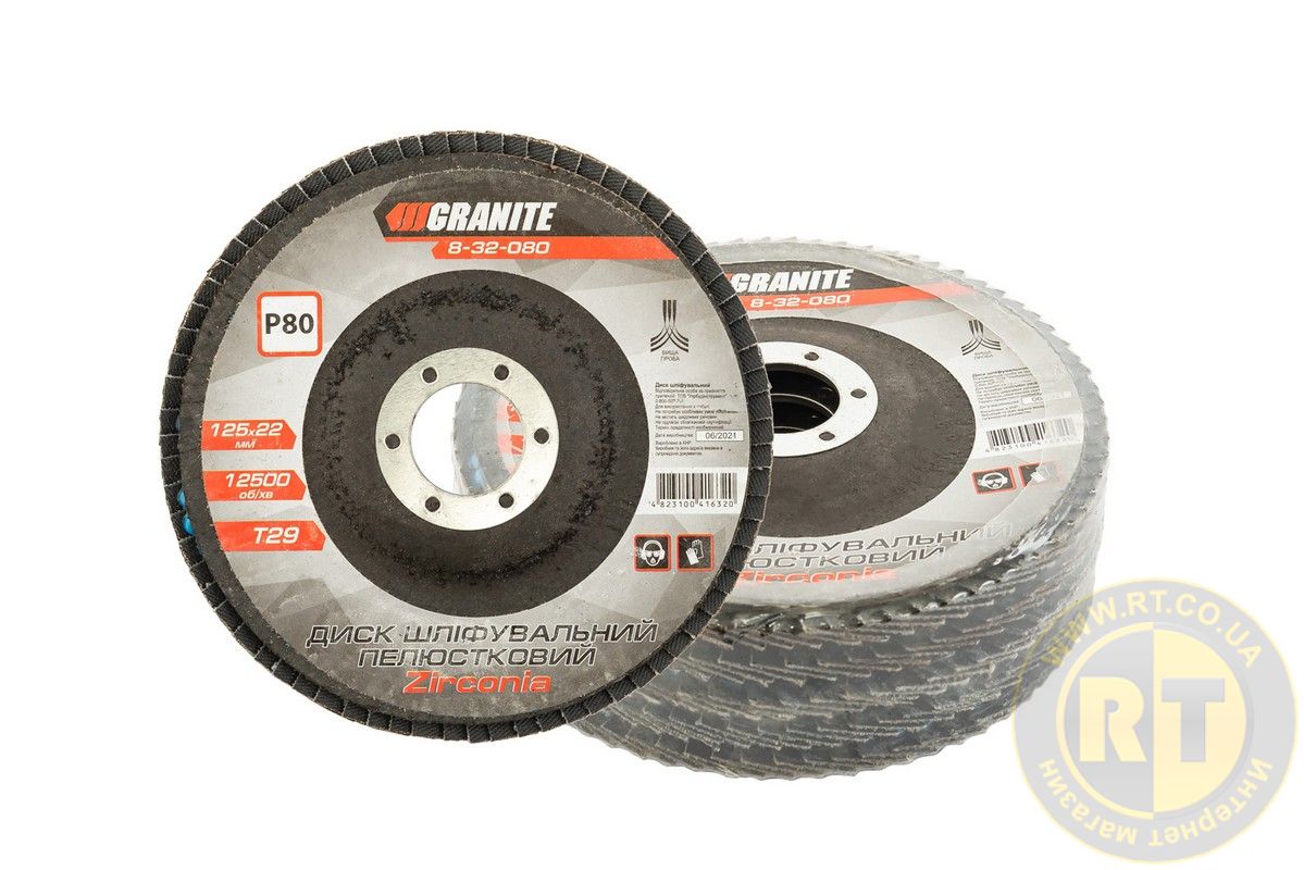 Диск шлифовальный лепестковый конусный ZIRCONIA Т29 зерно 80 125×22 мм 5 шт MASTERTOOL 8-32-080PC